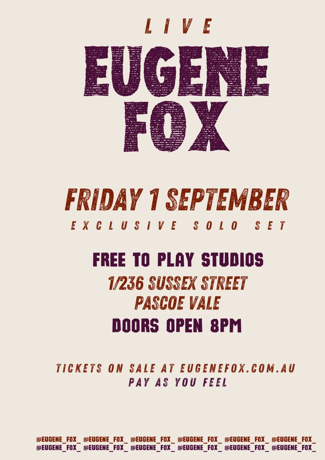 Book tickets Clear Filters Filter Clear Filter EUGENE FOX LIVE SHOW from $5.00 No results found No results match your search. Try removing a few filters.